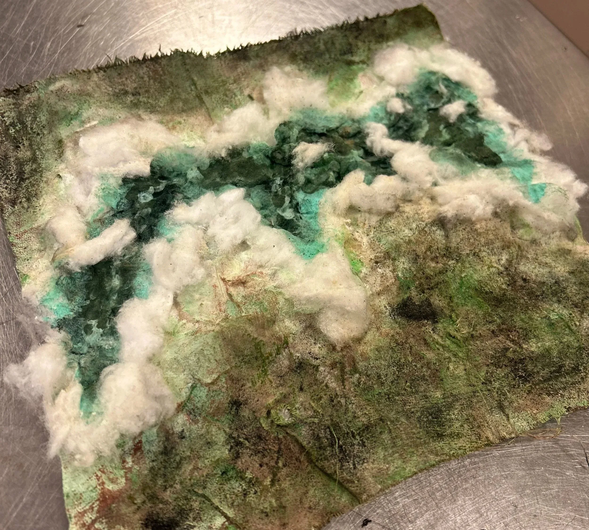 In my Costume Crafts coursework, I’ve been trained to transform pristine materials into story-driven, character-specific textiles. This includes creating the look of age, wear, and trauma through techniques that replicate mold, dirt, blood, sweat, and even dinosaur-attack damage. Each project focuses on understanding texture, fabric behavior, and visual storytelling, allowing me to craft garments that feel authentically lived-in and fully integrated into the world of the production.