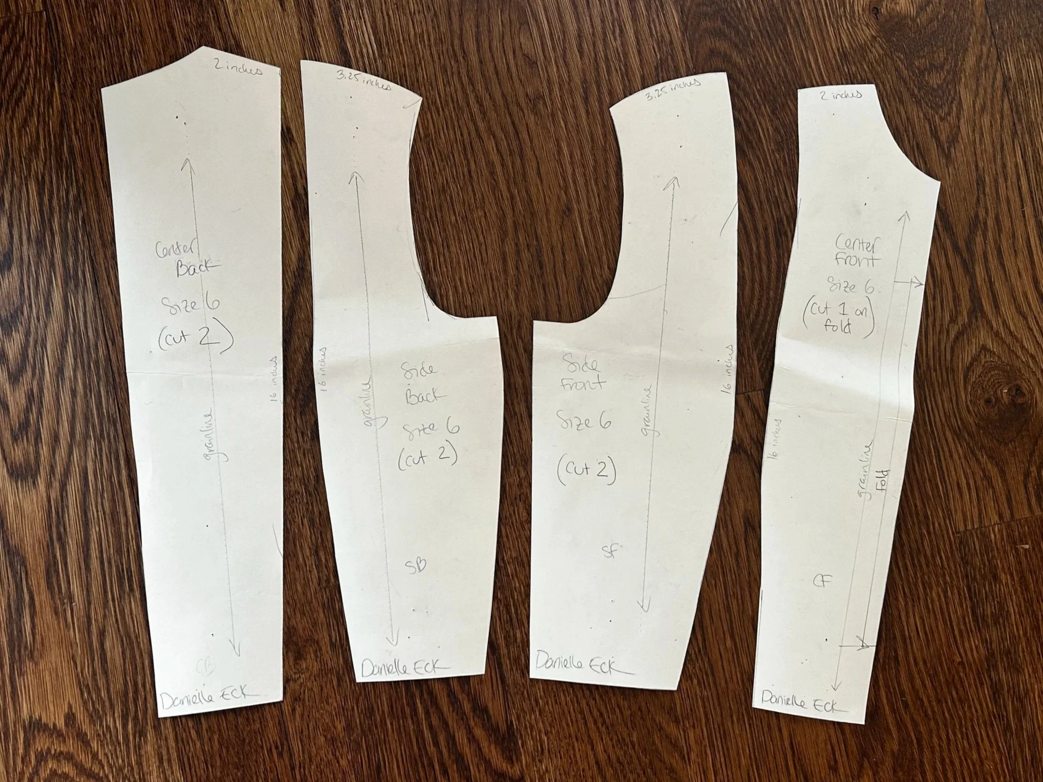 For this project, I drafted two foundational bodice slopers using standard flat patterning formulas. The first was a traditional four-dart bodice, drafted to create a clean, fitted base. I then manipulated that draft by slashing and redirecting the shaping to create a princess seam bodice. Both slopers were developed to establish accurate fit, precise shaping, and a strong foundation for future patterning projects and garment builds.